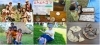 写真右列:貝合わせ(上)絵模様をヒントにピッタリ合う貝を探す 二枚貝がピッタリ合うのは、生きていた時の貝の貝殻同志のみ 年輪パズル(下)大きな木の円盤を砕いて破片にした後、木目をヒントに元の形に戻すパズル